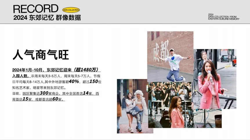 與此同時,要向年輕人學習,了解年輕人,向年輕人學習,才能把握趨勢,持續創新。通過AI、智聯體、機器人,不斷加強科技化,國際化,不斷提供年輕人喜歡的音樂現場、文化戲劇等內容。隨后,他還分享了東郊記憶的群像數據和消費者畫像,通過對消費者畫像和趨勢的深入分析,東郊記憶能夠精準把握市場需求,不斷調整和優化園區的商業布局和服務內容,以滿足消費者的多元化需求。